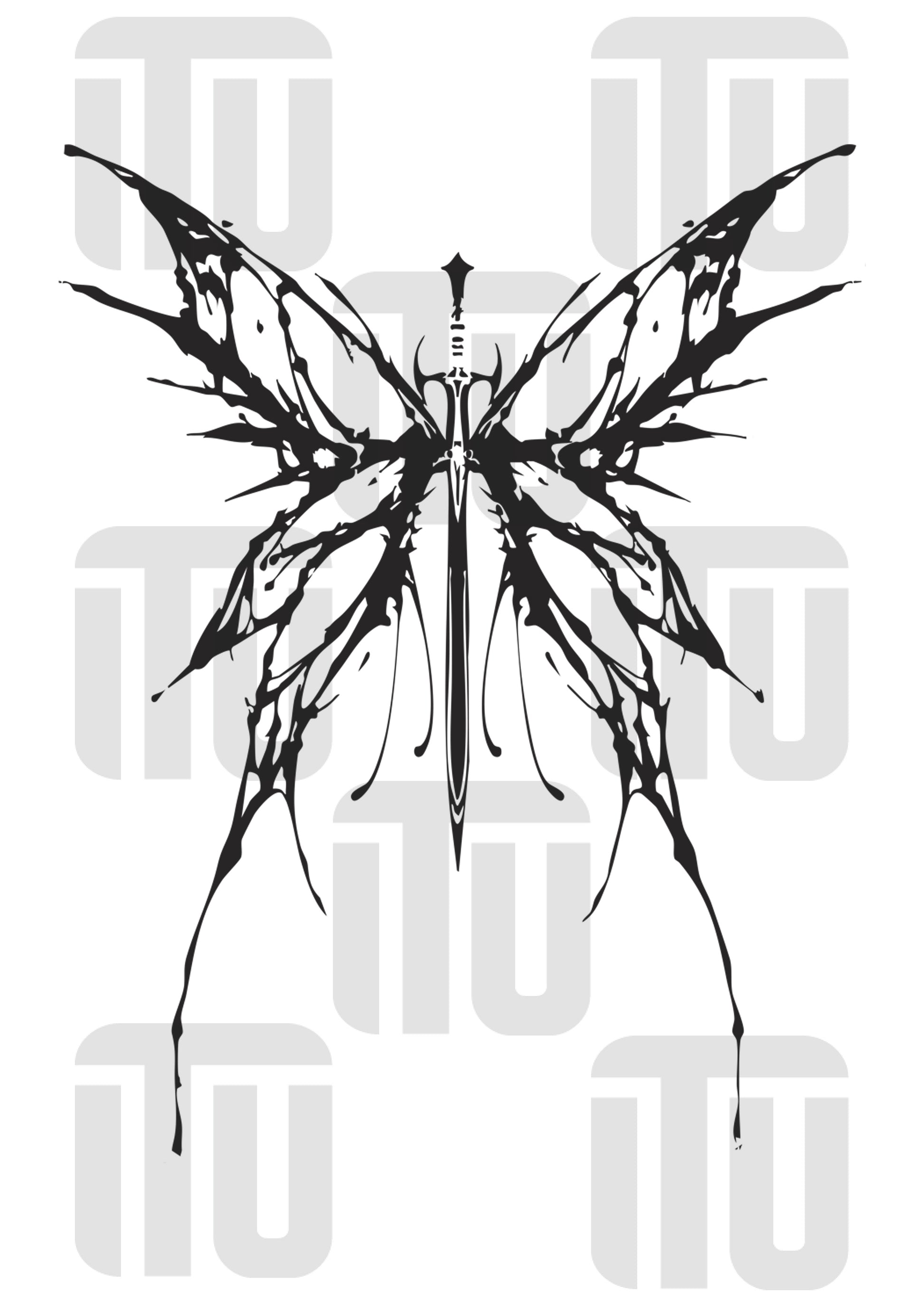 🦋 Design: Abstrakcyjny motyl o ostrych, płynnych liniach, przypominających rozpryski tuszu. Symetria i chaos spotykają się w jednej formie, tworząc obraz pełen napięcia i symboliki. Czerń i biel nadają całości graficzny, niemal tatuażowy charakter.