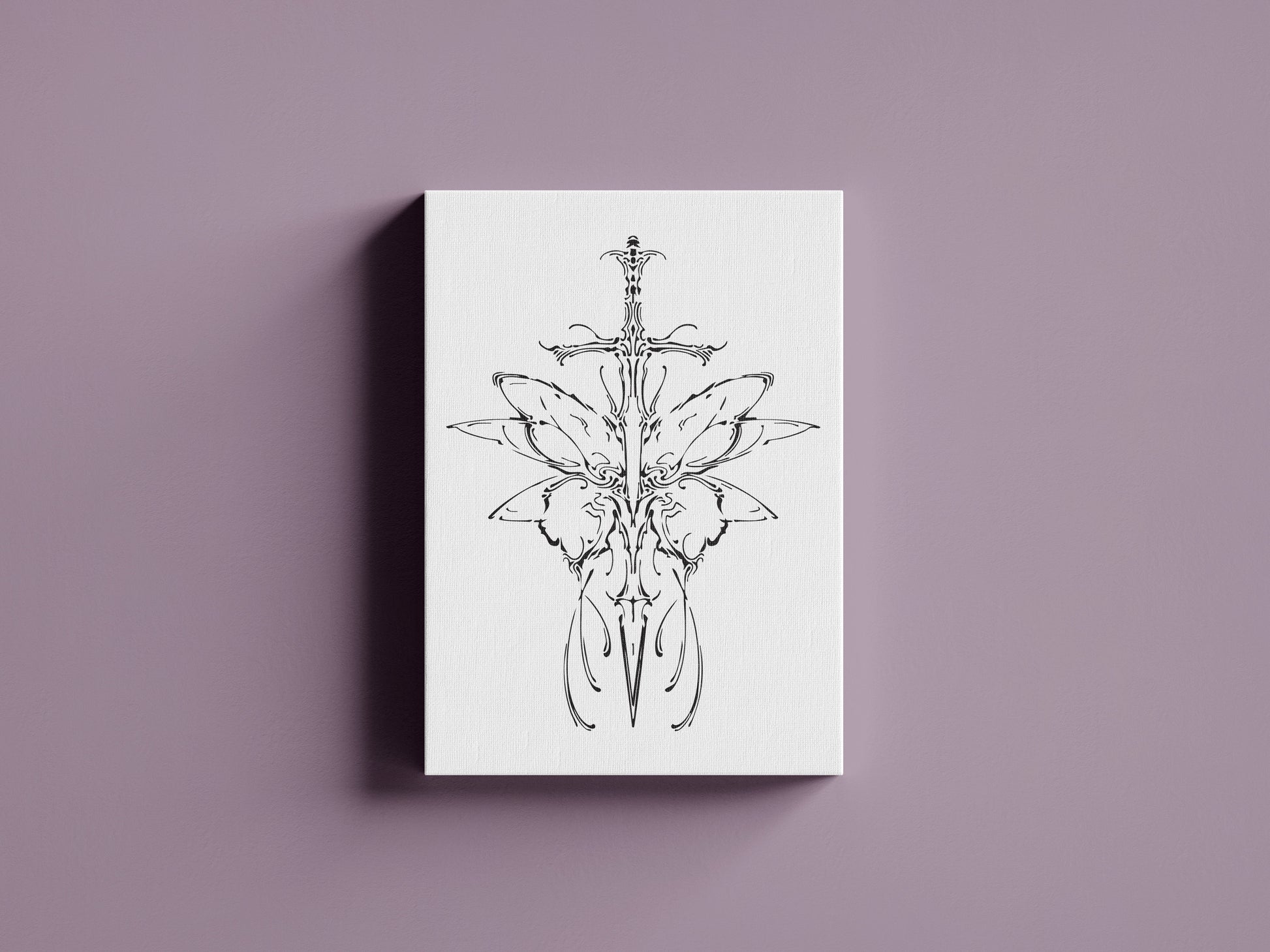 🦋 Design: Abstrakcyjny motyl o ostrych, płynnych liniach, przypominających rozpryski tuszu. Symetria i chaos spotykają się w jednej formie, tworząc obraz pełen napięcia i symboliki. Czerń i biel nadają całości graficzny, niemal tatuażowy charakter.