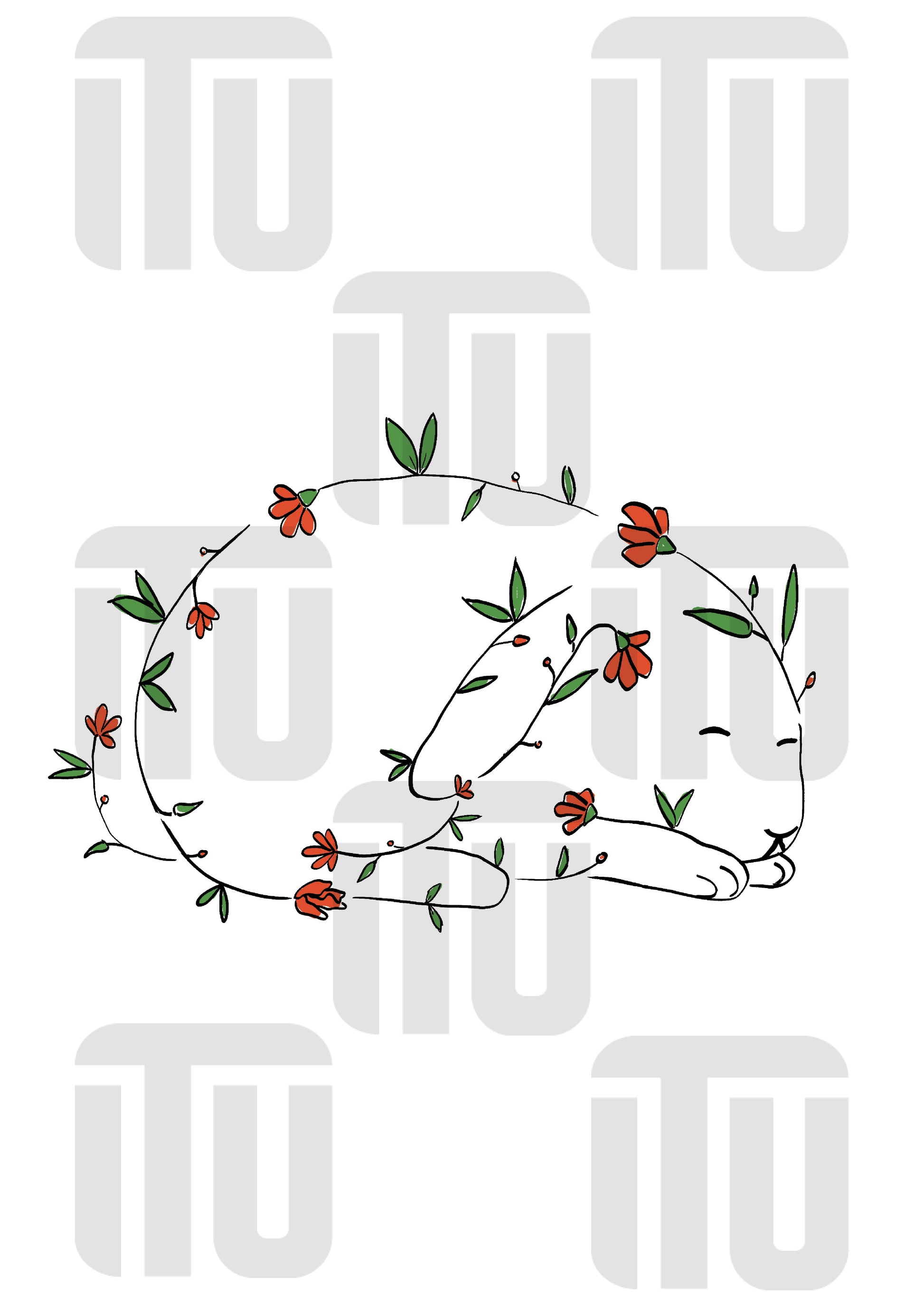 🐇 Design: Zając utworzony z subtelnych roślinnych detali – liści, płatków i drobnych gałązek – w spokojnej, zrównoważonej kompozycji. Grafika utrzymana w stylu nowoczesnego minimalizmu z botanicznym akcentem.