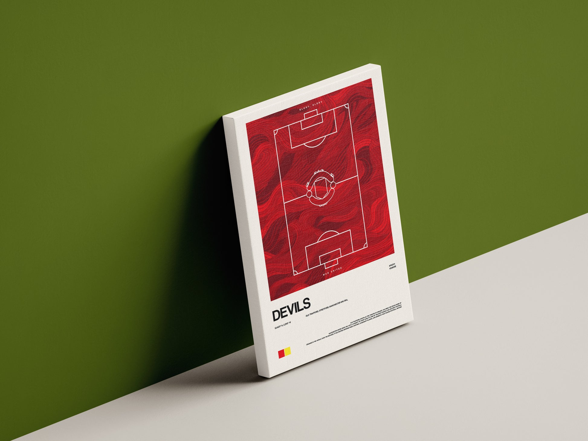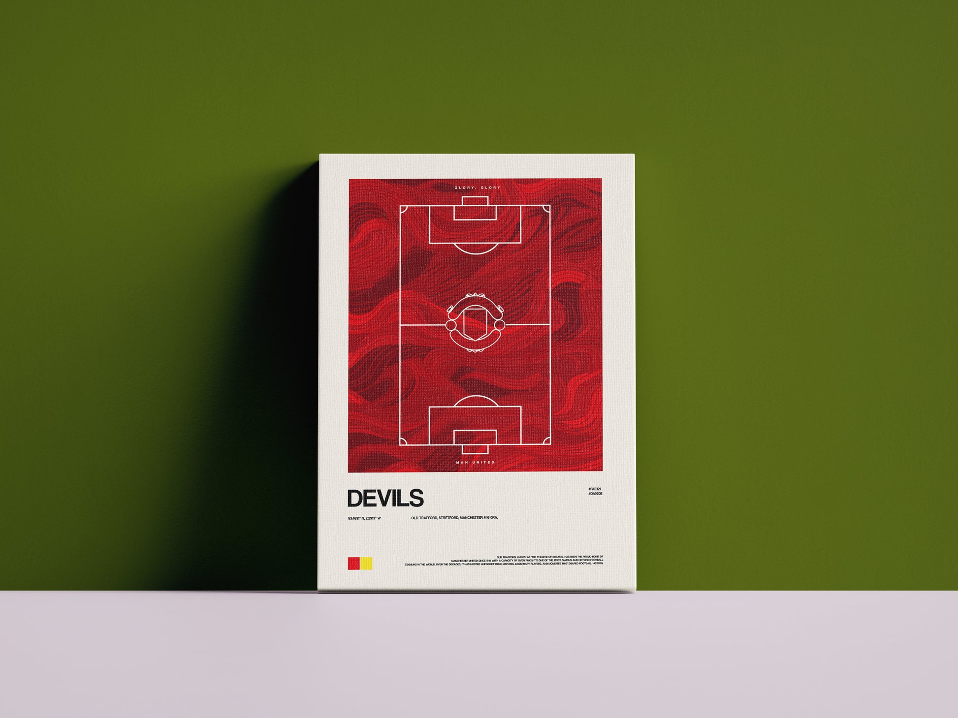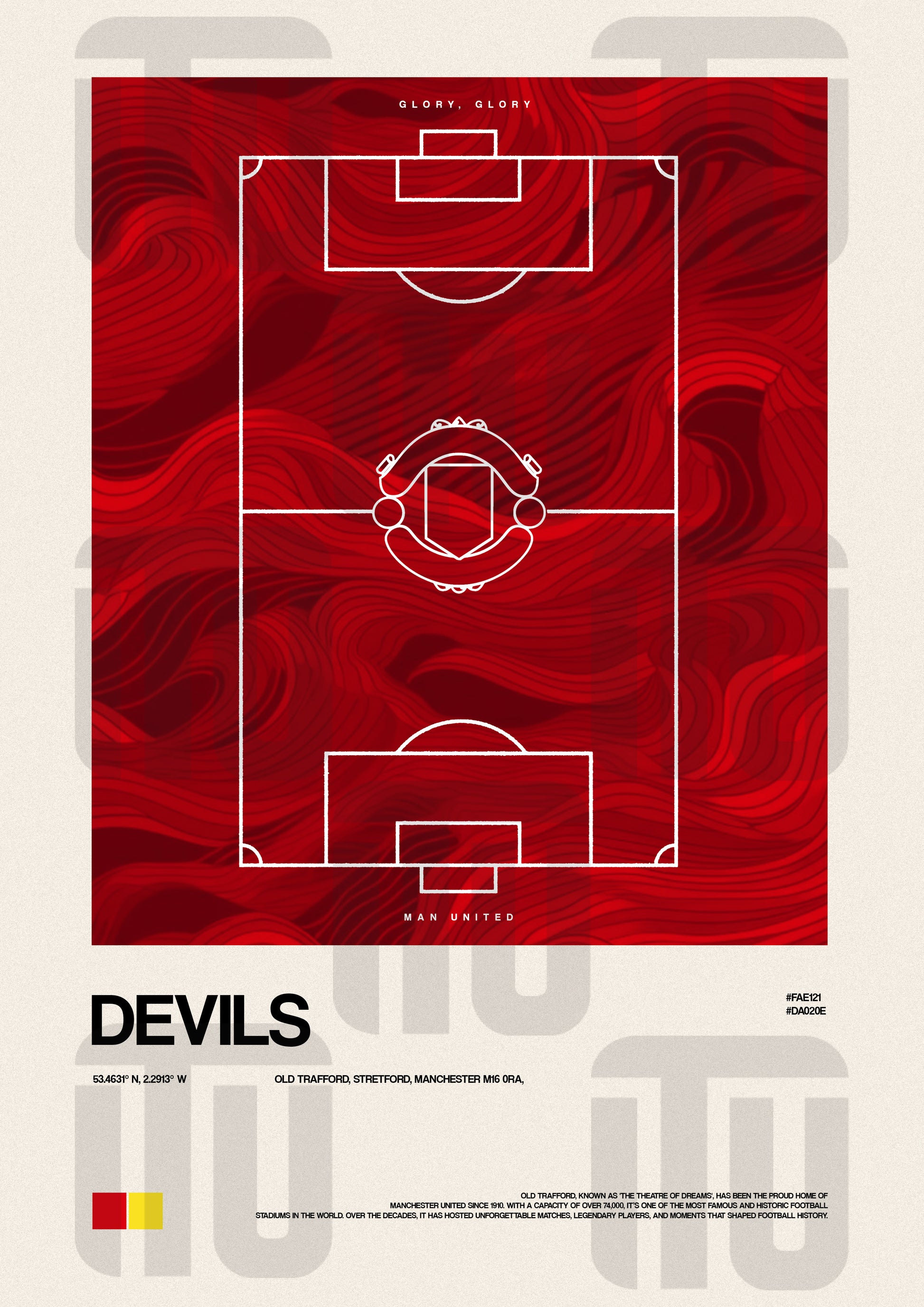 Symbol chwały, historii i niegasnącej pasji. Obraz ,,Czerwone Diabły" to artystyczna interpretacja stadionu, który dla milionów fanów na całym świecie jest świętym miejscem futbolu. Kultowy stadion przedstawiony w formie nowoczesnej grafiki, gdzie klasyczna architektura łączy się z minimalistycznym podejściem i głębokimi czerwieniami, oddającymi ducha Czerwonych Diabłów.