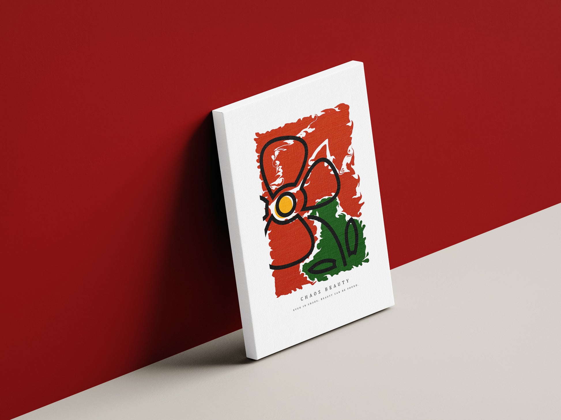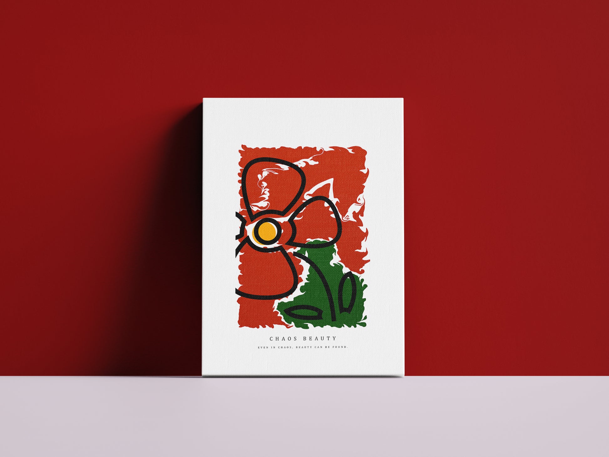 Obraz „Chaos Beauty” to intensywny, wizualny manifest – samotny czerwony kwiat przyciąga wzrok swoją wyrazistością, wybijając się na tle jasnej, spokojnej kompozycji. To połączenie ognia i ciszy – idealne dla tych, którzy lubią wyraziste dodatki o symbolicznym charakterze.