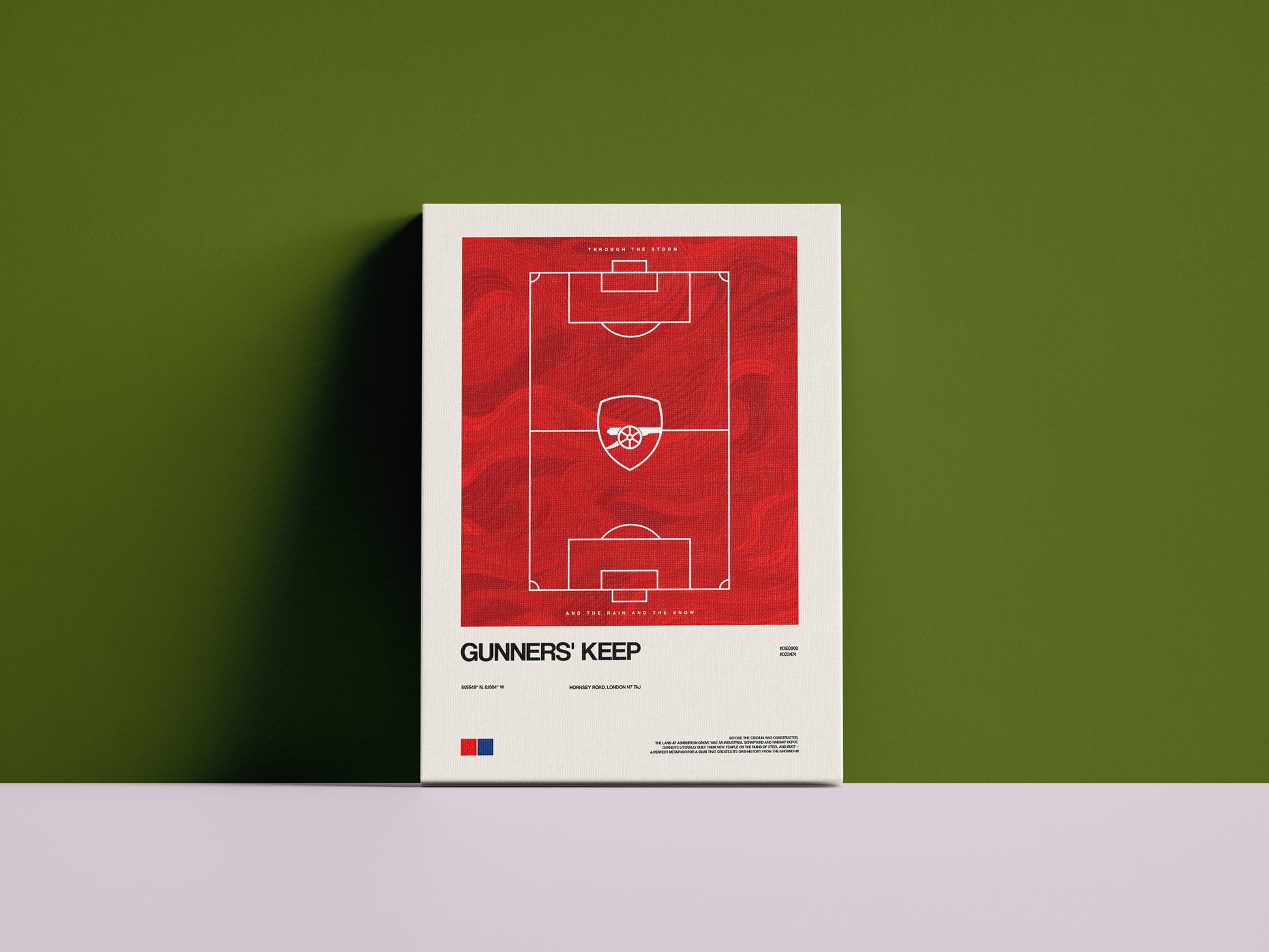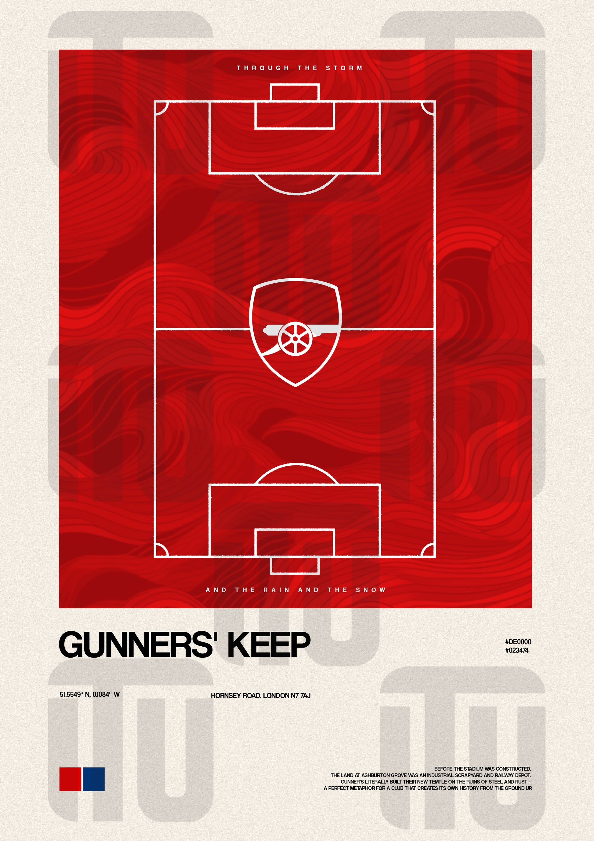 🏟️ Design: Widok stadionu z lotu ptaka z centralnie osadzoną murawą, otoczoną precyzyjnie odwzorowanymi trybunami. Kolorystyka oparta na głębokiej czerwieni, grafitach i jasnych akcentach – nawiązująca do dumnej tradycji północnolondyńskiego futbolu.