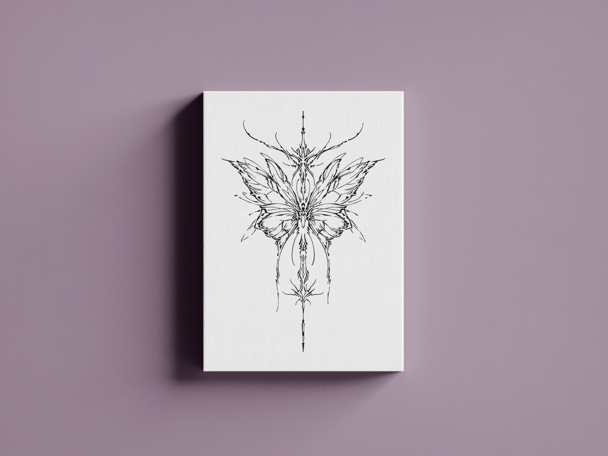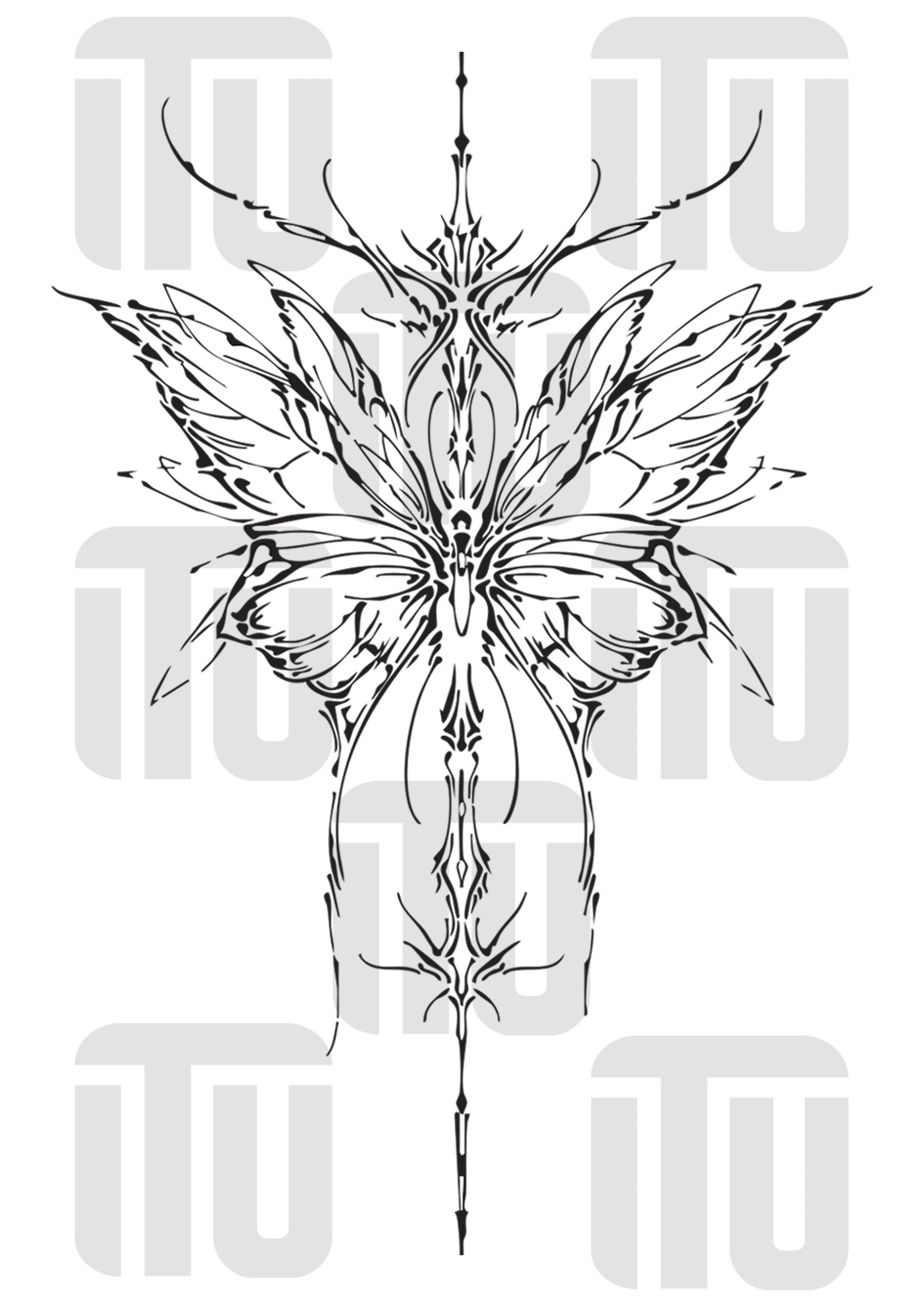 🦋 Design: Abstrakcyjny motyl o ostrych, płynnych liniach, przypominających rozpryski tuszu. Symetria i chaos spotykają się w jednej formie, tworząc obraz pełen napięcia i symboliki. Czerń i biel nadają całości graficzny, niemal tatuażowy charakter.