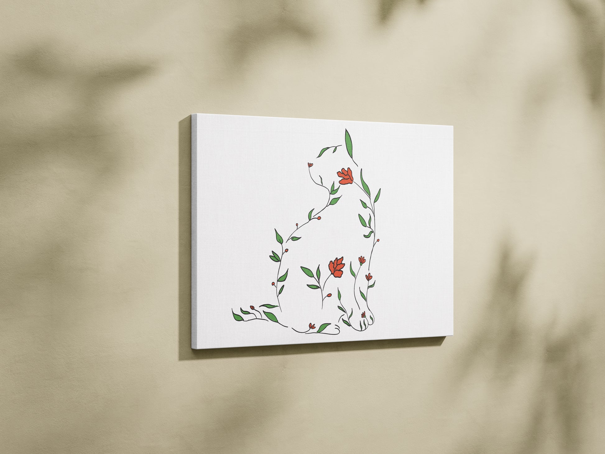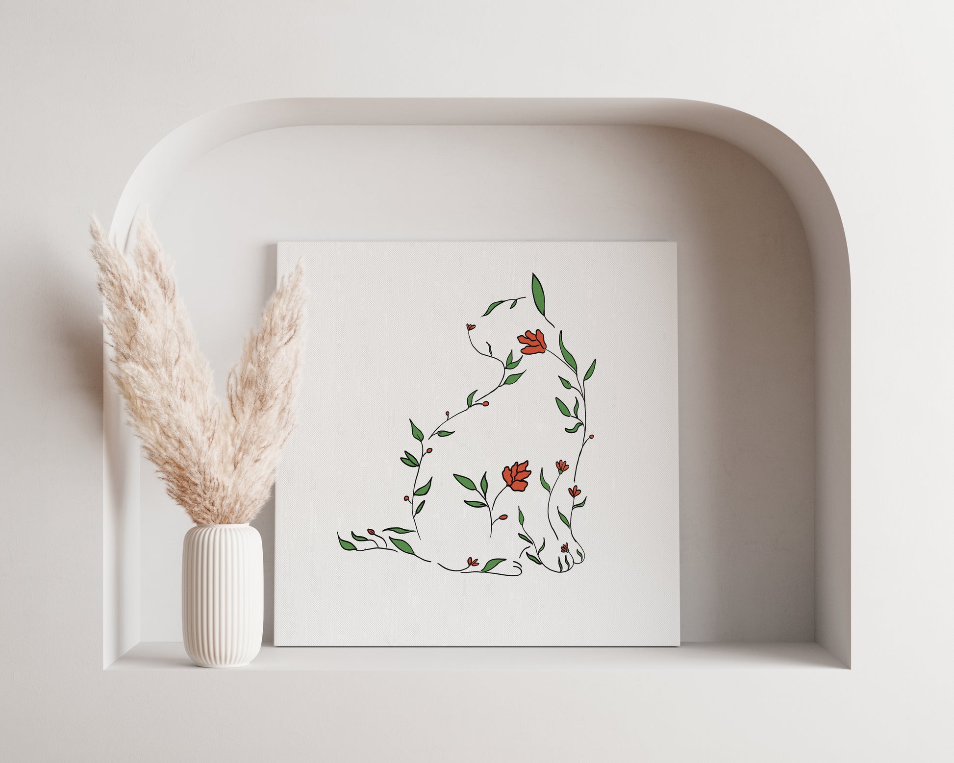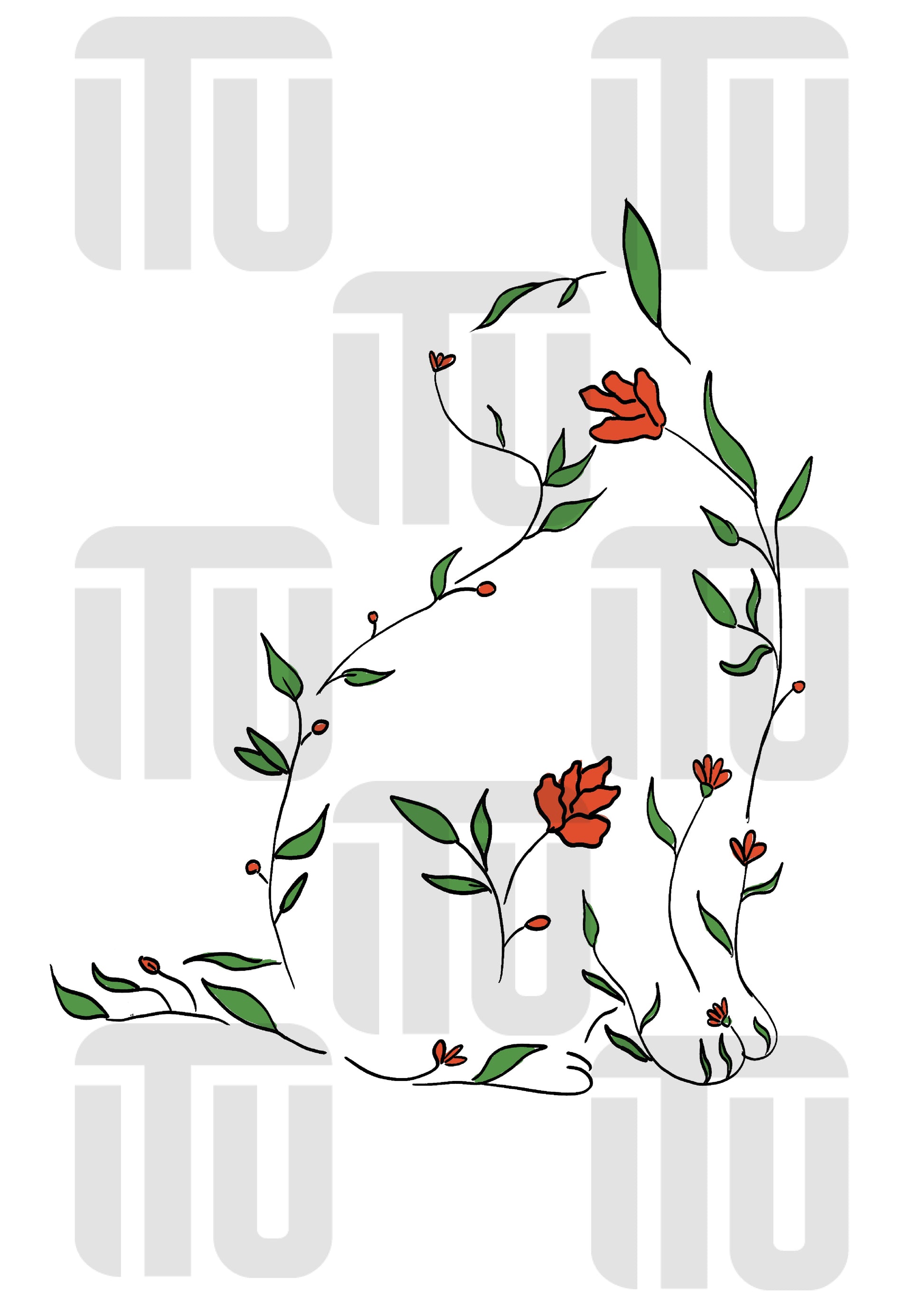 🌸 Design: Graficzna sylwetka kota uformowana z różnorodnych, ręcznie rysowanych kwiatów i liści. Delikatna linia, miękkie przejścia i florystyczna kompozycja tworzą wyjątkowy balans między minimalizmem a bogactwem formy.