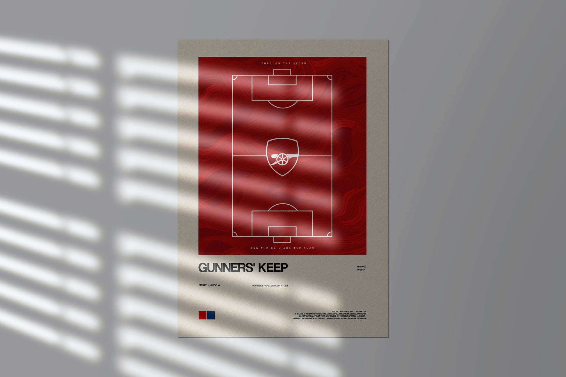 🏟️ Design: Widok stadionu z lotu ptaka z centralnie osadzoną murawą, otoczoną precyzyjnie odwzorowanymi trybunami. Kolorystyka oparta na głębokiej czerwieni, grafitach i jasnych akcentach – nawiązująca do dumnej tradycji północnolondyńskiego futbolu.