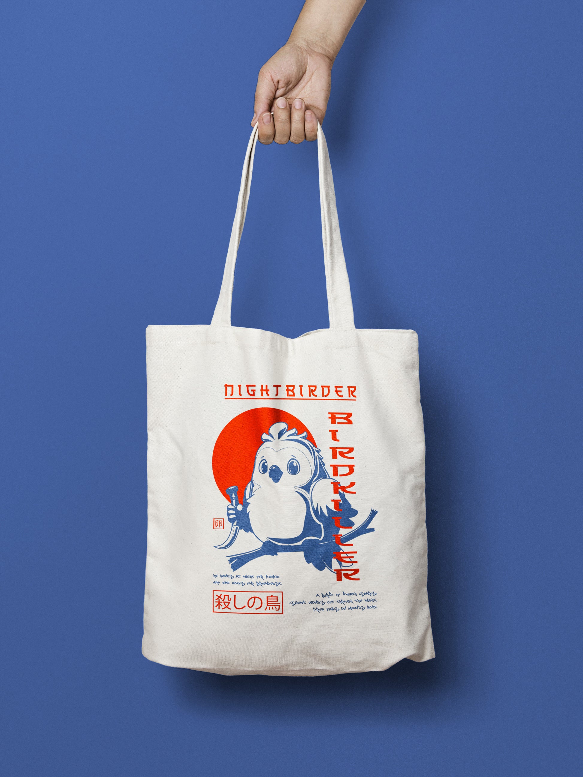 Wprowadź odrobinę mroku, humoru i ptasiego pazura do swojego wnętrza! Torba „Nightbirder – Birdkiller” to wyjątkowa ilustracja inspirowana japońską estetyką, przedstawiająca słodkiego, lecz śmiertelnie niebezpiecznego ptaka-zabójcę. Idealny dla fanów nieoczywistego designu, anime, kultury japońskiej i... śniadań bez jajek.